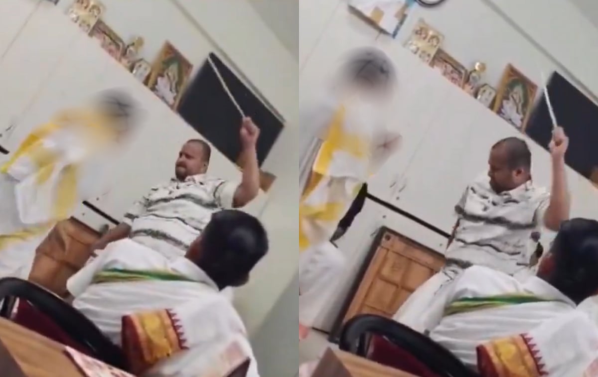Ujjain: A disturbing video from Maharshi Sandipani Rashtriya Vedavidya Pratishthan in Ujjain has triggered widespread outrage on social media after it showed a hostel warden scolding and repeatedly hitting a young student with a stick.