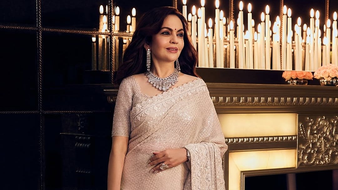 Nita Ambani's Million-Dollar Diamond Necklace, Huge Ring In A Ivory Saree Will Leave You Blinded